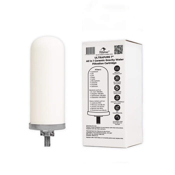 The Filteroo® ULTRAPURE 7″ All in 1 Ceramic Gravity Water Filtration Candle is an exceptional choice for clean, great-tasting water. Crafted by British Berkefeld, pioneers in ceramic filtration for over 198 years, this cartridge represents the pinnacle of water purification technology.