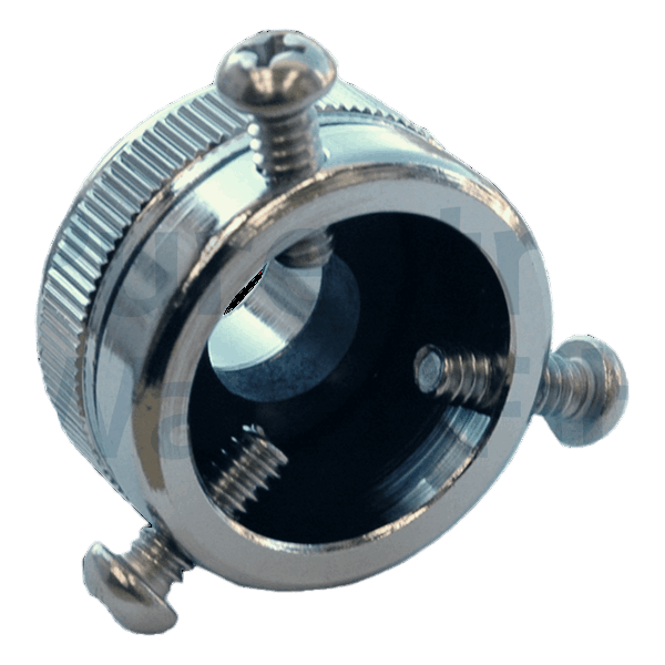 This chrome tap adaptor fits plain tap spouts and converts them to a 13/16″ (21mm) male thread, suitable for connecting our benchtop water filter diverter valves. The adaptor is secured to the tap using three grub screws, which tighten around the spout’s exterior. Inside, an O-ring ensures a watertight seal. Once attached, the lever or spring diverter valve connects seamlessly to the other side of the adaptor.